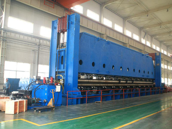 主傳動(dòng)裝置:主傳動(dòng)裝置由主電機(jī)、三角皮帶、圓柱齒輪減速箱、電液推桿制動(dòng)器等組成。主傳動(dòng)可以正反轉(zhuǎn),為板材的卷制提供動(dòng)力。 翻倒裝置:翻倒裝置由滑枕、翻倒油缸等組成。翻倒裝置的翻倒,為制品取出成為可能 。固定、翻倒側(cè)機(jī)架、底盤:固定、翻倒側(cè)機(jī)架、底盤為鋼板焊接件,焊后退火去除應(yīng)力、噴丸處理。